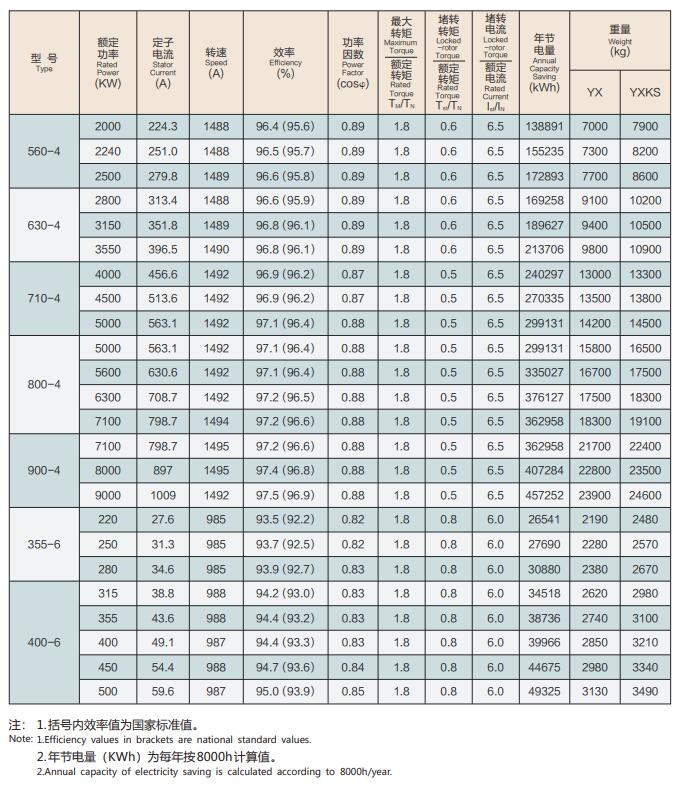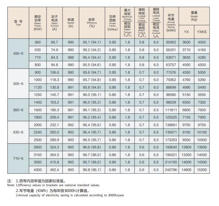 YXKS(IP44)系列6v高压三相异步电机技术参数: