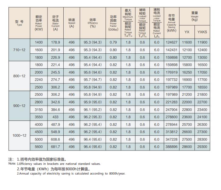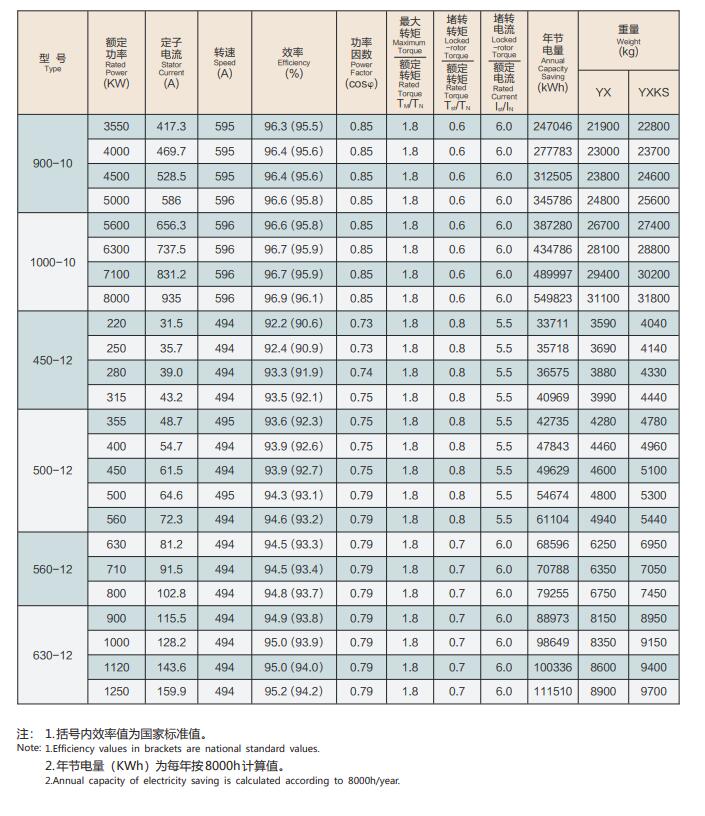 YXKK系列6kv高效三相异步电机技术参数: