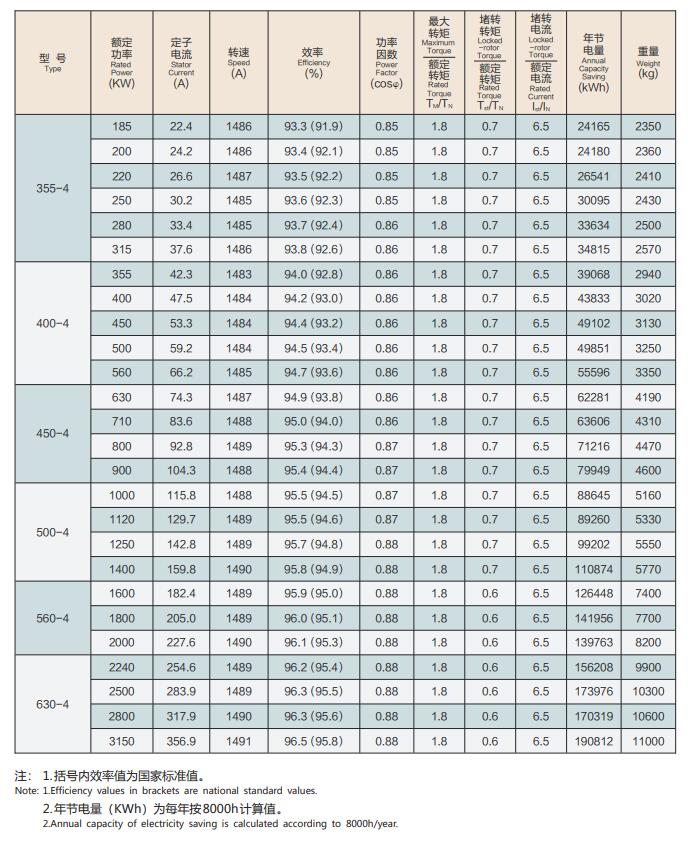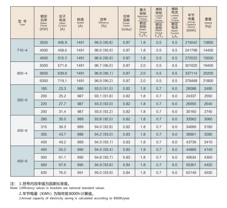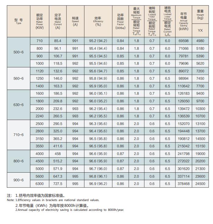YXKK(IP44)、(IP54)系列6kV电机技术参数: